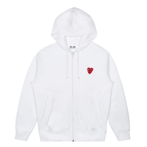 CDG Play Hoodie Sweatshirt with Double Red Heart White