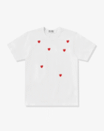 The CDG Play Multi Red Heart T-Shirt White is the perfect blend of luxury streetwear and minimalistic Japanese design. Comme