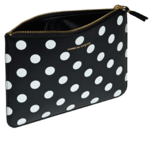 The CDG Wallet Polka Dots Printed Zip Around Wallet Red SA3100PD is a statement accessory that blends iconic Comme des Garçons design with everyday practicality. Crafted with premium cowhide leather, this wallet is designed for durability, style, and functionality. Its eye-catching red base, accented with contrasting white polka dots, makes it a bold fashion choice for individuals who appreciate unique yet timeless pieces. The wallet’s zip-around closure ensures your essentials stay safe and secure, while offering quick and easy access whenever needed.