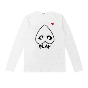 With a relaxed yet refined fit, it caters to both comfort and modern aesthetics. Transitioning from casual outings to semi-formal looks becomes seamless, making it a must-have addition to any fashion-forward wardrobe. For fans of unique streetwear, the Play Comme des Garçons Double Eye Black Heart Long Sleeve (Grey) embodies versatility, exclusivity, and lasting appeal.