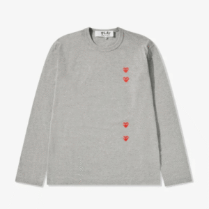 The Play Comme des Garçons Double Eye Black Heart Long Sleeve (Grey) is the perfect blend of comfort, minimalism, and iconic streetwear style. Known for its timeless designs, Comme des Garçons Play has once again delivered a versatile wardrobe essential that captures attention with subtle details. Crafted from premium cotton, this long sleeve shirt offers a lightweight yet durable feel, making it suitable for year-round wear.